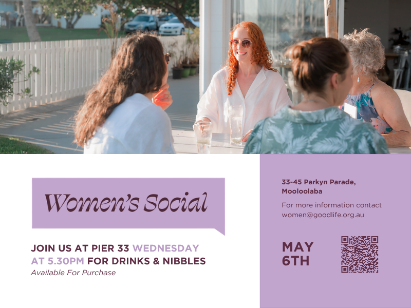 Contact: Ruth Jeffs for details: 0402010860, women@goodlife.org.au