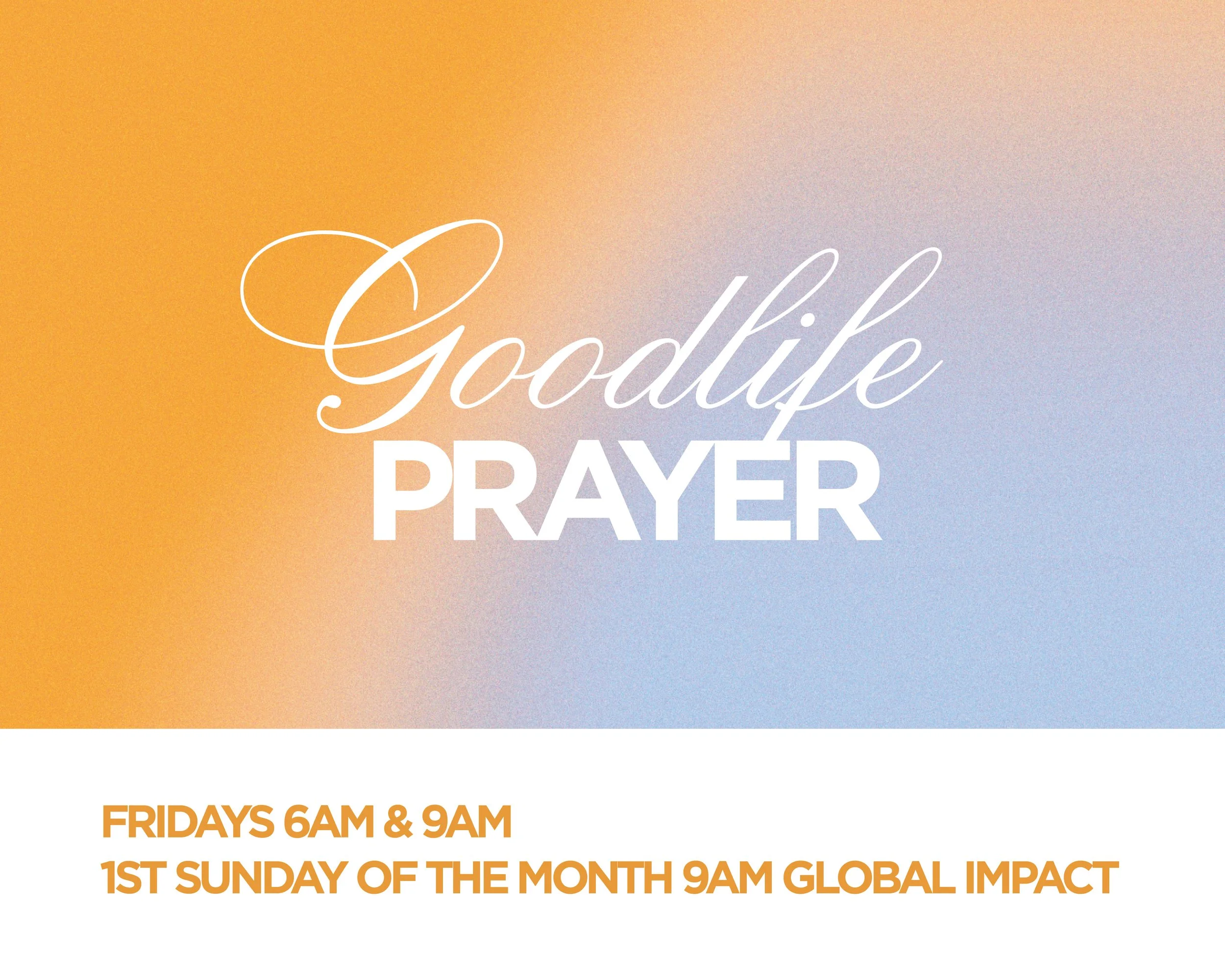 Join us for a time of group prayer every Friday at 6am or 9am.
