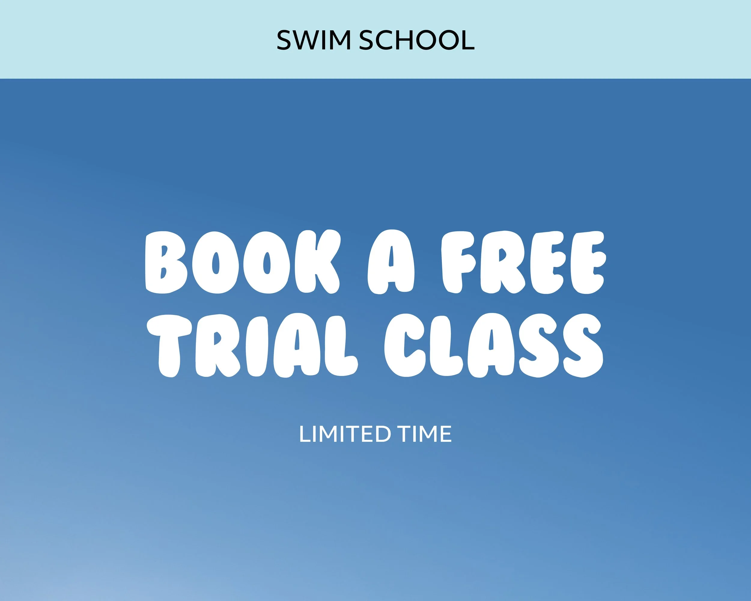 For a limited time we are offering a Free Trial Swim Lesson for kids 3 yrs to 5yrs, available Mon to Fri mornings only.